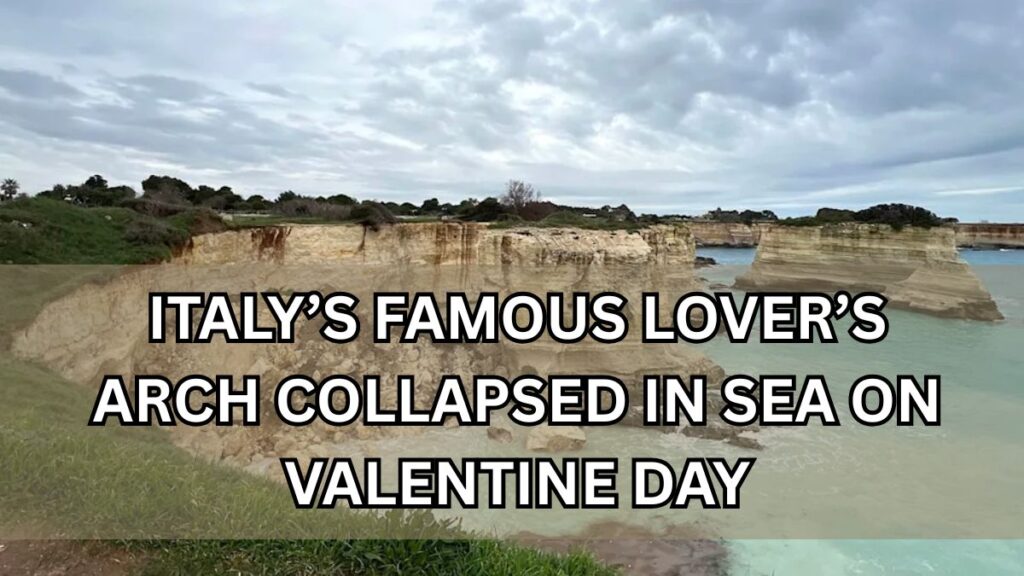 A notable rock formation known as “Lovers’ Arch” in Southern Italy collapsed on Valentine’s Day due to severe weather conditions. The powerful storm surges that resulted in heavy rain and winds over the weekend led to the fragile structure at Faraglioni di Sant’Andrea crumbling on Saturday, February 14.