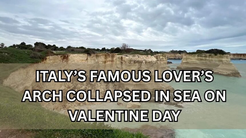 A notable rock formation known as “Lovers’ Arch” in Southern Italy collapsed on Valentine’s Day due to severe weather conditions. The powerful storm surges that resulted in heavy rain and winds over the weekend led to the fragile structure at Faraglioni di Sant’Andrea crumbling on Saturday, February 14.