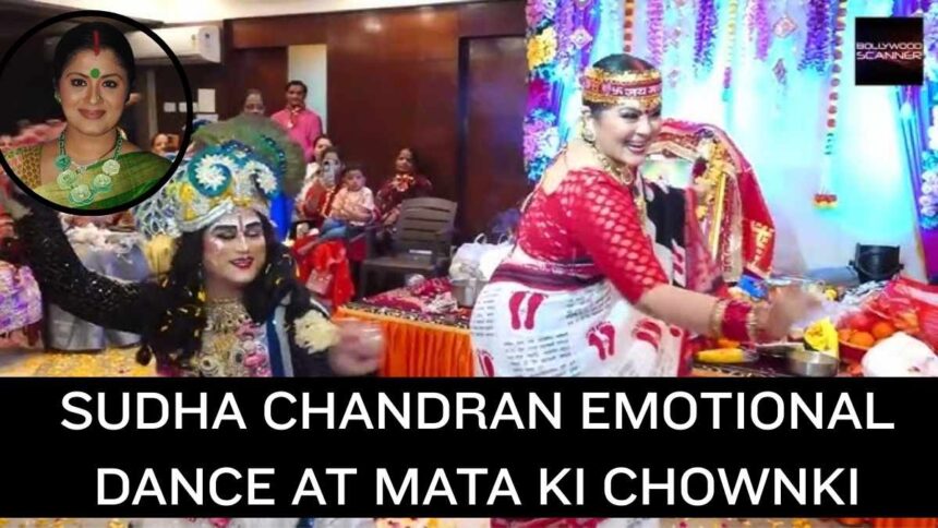 Sudha Chandran is shown in viral footage celebrating a Mata Ki Chowki (a Hindu traditional festival held in honour of the Goddess) through prayer, the performance of bhajans (devotional songs) and participation by the audience, with a high level of involvement. In the video footage from this event, Sudha Chandran was dressed in red and white saree (traditional colours worn by people who celebrate a Goddess), and she wore a headband reading โJai Mata Diโ while she celebrated with others with a performance of Kali Mata bhajans.